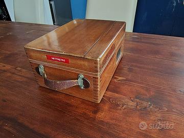 Wattmetro portatile di precisione della C.G.S. Monza risalente agli anni '60, destinato ad uso professionale. Proviene da un impianto industriale presente negli anni '60 nella zona Bovisa di Milano. Stato di conservazione eccezionale, il prodotto è perfettamente integro in ogni sua parte. Si presenta nella sua custodia originale in legno massello lucidato. Nel coperchio della custodia è ancora presente, perfettamente conservato, il foglio delle specifiche che ne conferma la provenienza come prodotto della CGS Monza. Non avendo modo di provarlo non sono in grado di dire se ancora funzionante. Il prezzo è riferito ad una unità, ma sono disponibili due wattmetri identici.