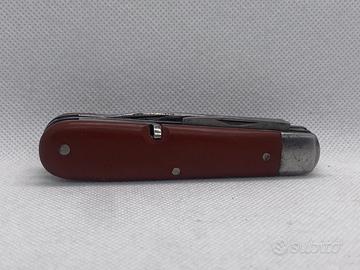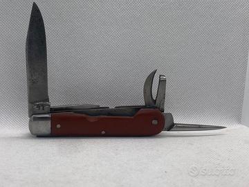 Incredibile esemplare da collezione del celebre Modello 1908, un autentico pezzo di storia militare svizzera risalente al pieno della Seconda Guerra Mondiale. Questo Wenger si distingue per uno stato di conservazione eccezionale: le guancette originali in fibra vulcanizzata rossa sono integre e perfette, mentre le componenti metalliche colpiscono per la totale assenza di ruggine, mantenendo una pulizia e una lucentezza difficili da trovare in oggetti di oltre ottant’anni. Le molle interne sono estremamente solide e garantiscono ancora oggi uno scatto deciso e potente per la lama principale e gli altri accessori. Il coltello è un pezzo assolutamente genuino, punzonato P41 sulla lama a certificarne l'anno di produzione, ideale per chi cerca un oggetto raro che non ha subito restauri invasivi. Segnalo per precisione che lo strumento cacciavite/levacapsule risulta bloccato in posizione chiusa, un dettaglio minimo probabilmente dovuto a residui d'epoca e facilmente risolvibile, che non intacca minimamente il valore storico di un pezzo così pulito e strutturalmente impeccabile. Un’occasione unica per aggiungere alla propria collezione un Wenger d'annata in condizioni superiori alla media.