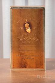 Grande classico scotch whisky imbottigliato nel 1980 nella zona dello Speyside , 75 cl , 43 gradi. Bottiglia integra, e ben sigillata conservata nella sua confezione di cartone ben tenuta con un piccolo taglietto nella parte superiore come da foto. Comprata 15 anni fa in un negozio specializzato , da quel giorno conservata in cantina al buio e in assenza di umidità