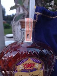 vendo bottiglia di whisky crown royal anno 1972 completa di scatola e sacchetto di velluto