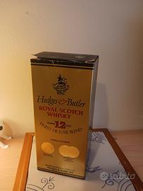 Vendo bottiglia di Hedges & Butler Royal Scotch Whisky 12 Years Old – Finest De Luxe Blend, formato 75 cl, mai aperta con sigillo fiscale originale e scatola vintage.