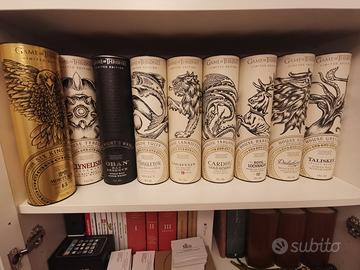 Gamma completa di 9 single malt scotch whisky collection dedicata alla fortunata serie tv Game of Thrones, in Italia conosciuta anche con il nome "Trono di Spade".