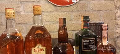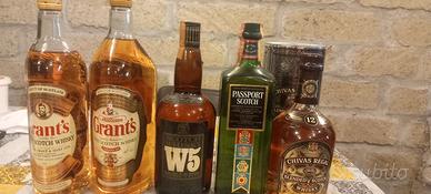lotto di 5 bottiglie di whisky vintage, Grant.s 1,125 litri Grant.s 86 us proof W5 scotch whisky passport scotch chivas regal 12y.o scatola di latta. livelli perfetti.
