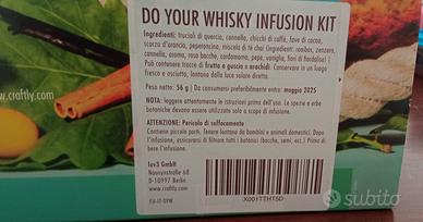 particolarissimo set per la preparazione di whisky aromatizzato. dotato di tantissime essenze e istruzioni. totalmente nuovo mai aperto.