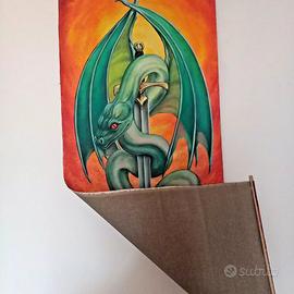 WICCA M. MERATI ACRILICO SU TELA DRAGONE ANNI 90