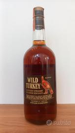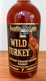Vendo bottiglia da collezione di Wild Turkey 7 Years Old Kentucky Straight Bourbon Whiskey, imbottigliata a 86.8 Proof. Questa è una versione non più in produzione e estremamente ricercata dagli appassionati e collezionisti di bourbon, in particolare per le sue specifiche marcature storiche.