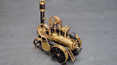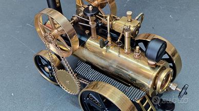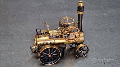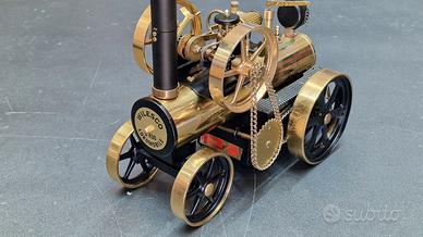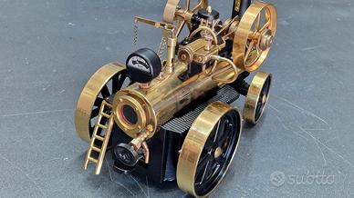 Il modello D 430 rappresenta il top di gamma di questi veicoli con propulsione a vapore, la costruzione è interamente in ottone e metallo. Condizioni eccellenti, nessuna anomalia nel funzionamento, nessun pezzo bruciato o sciolto. Grazie alla puleggia esterna sul volano è anche possibile azionare macchinari e attrezzi esterni prodotti dalla azienda Wilesco. Questo modello di “trattore a vapore” è ancora in produzione e tutti i ricambi (che raramente servono in realtà) sono quindi disponibili.