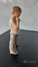 Statuina Cuore d'oro (Heart of Gold). Raffigura un bambino con un cuore d'oro tra le mani. Realizzata in resina con colorazione effetto legno, ideata dall'artista Susan Lordi per la collezione Willow Tree.