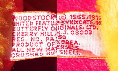 * RISPONDO SOLO A UTENTI VERIFICATI, iscritti a questo sito, e CON PIU' ANNUNCI ATTIVI. * * NON VALUTO PROPOSTE (Non siamo più all'asilo).* *NON USO TUTTOSUBITO.* WOODSTOCK Peluche anni ‘70 NUOVO by BUTTERFLY ORIGINALS *NON è un GIOCATTOLO!* _ NO REPLICHE CONTEMPORANEE! _ NO HAND MADE! _ NO VINTAGE USATO! NULLA a che vedere con PELUCHE contemporanei di SNOOPY e PEANUTS riediti ATTUALMENTE che si possono trovare OVUNQUE, nei negozi o sul web, disponibili in MIGLIAIA DI PEZZI di NESSUN VALORE Vintage, collezionistico e qualitativo!. PELUCHE NUOVO ma AUTENTICO VINTAGE realisticamente FINE ANNI ‘70 o PRIMISSIMI ANNI ‘80. Inconfondibile per i suoi MARCHI e DISPONIBILE IN UNA SOLA COPIA! - CAPOLAVORO della produzione UNITED FEATURES anni Settanta, questo BEAN BAG ormai introvabile ed in IMMACOLATE CONDIZIONI, ci regala un WOODSTOCK di PICCOLE-MEDIE DIMENSIONI, dal pelo morbidissimo, con una magnifica crestina e zampine e coda in panno feltro. MATERIALE ESTERNO: Peluche di PRIMA QUALITÁ. INTERNO: Materiali nuovi di PRIMA QUALITÁ (come da etichetta: ALL NEW MATERIALS CRUSHED NUT SHELL) MISURE Altezza (dalla testa alla base del culetto): cm.16 ca. PESO: 147 gr. - CONDIZIONI IMMACOLATE. PELUCHE di OLTRE 40 anni, ma NUOVO DA NEGOZIO, completo IN OGNI SUA PARTE, OTTIMAMENTE CONSERVATO e perfettamente PULITO. IL peluche è un BEAN BAG, cioè con il corpo NON SOLIDO E STABILE ma pieno di PICCOLI MATERIALI DA RIEMPIMENTO (In questo caso GUSCI DI NOCE), quindi è MOLTO PESANTE e, di conseguenza, NON E’ NATO PER STARE IN PIEDI DA SOLO! Deve essere NECESSARIAMENTE appoggiato. OVVIAMENTE, avendo oltre quarant'anni, la TESTA è ormai 'SVUOTATA', 'SGONFIA' ma questo è NATURALE per un bean bag! Se volete un peluche 'pieno', il bean bag Vintage NON fa per voi: cercate un altro genere di peluche. © WOODSTOCK 1965, 1972 United Features Syndicate Inc. - BUTTERFLY ORIGINALS LTD. PRODUCT OF KOREA. ALL NEW MATERIALS CRUSHED NUT SHELL. - SPEDIZIONE con POSTE DELIVERY STANDARD.