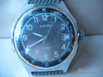 Wostok vintage meccanico carica manuale cassa ottagonale mm.38 quadrante originale grigio made in USSR vetro da lucidare o sostituire data al 3 movimento meccanico 17 rubini funzionante cinturino in canapa