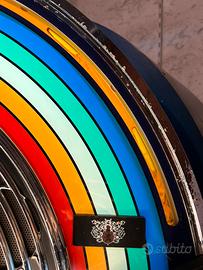 Stupendo e raro Wurlitzer nella edizione Rainbow, dotato di impianto Bluetooth e dispositivo Aux per connettere tutto quello che si vuole. Sound incredibile, da discoteca!