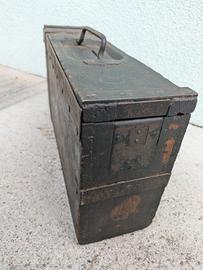 come da titolo robusta cassa per nastro da 250 colpi per mitragliatrice Schwarzlose austriaca ww1 prima guerra, da collezione privata e quindi tenuta bene come una reliquia. meccanica perfettamente funzionante e persino trattata con antitarlo.