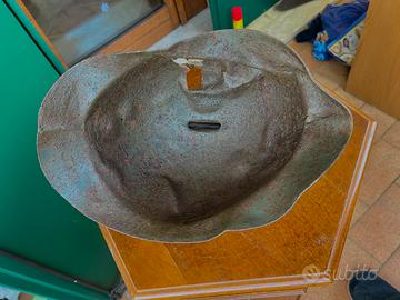 Ww1 stupendo elmetto italiano adrian modello 1916 della prima guerra mondiale, battele damaged, colpito da scheggia e deformato, un pezzo di storia che racconta gli effetti devastanti degli scontri sul campo di battaglia. Presente piu del 90% di colore verde, il matallo e' solido, preservato. Oggetto di grande impatto visivo e scenico
