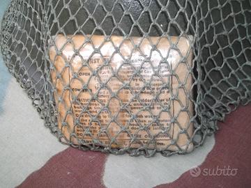 NON ACCETTO TRANSAZIONI TRAMITE SUBITO. Se interessati, contattatemi. Elmetto Esercito Britannico Mk III, Seconda Guerra Mondiale. Il cerchione interno è marcato 1944, mentre la vernice sul guscio metallico non permette di scorgere altri marchi. La rete è di fabbricazione canadese, fine WW2. Completo di pacchetto medicazione d'epoca. Tg piccola, forse una 54/55. La pelle della cuffia appare assai rinsecchita dal tempo. Spedizione € 10.80 Poste Delivery Standard