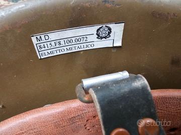 Interno ww2 di colore grigio/verde, ganci rettangolari e sottogola in cuoio grigio verde; prese d'aria di 2° tipo o a scalino.