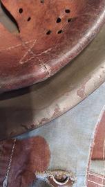L'interno, rimontato, è in buonissime condizioni, mentre il soggolo, originale WW2 , benché ancora piuttosto morbido, appare screpolato.