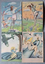 della Regia Aeronautica, 10 cartoline, di cui 2 viaggiate , illustrate da : Bocassile (propaganda militare), Burattin, Rovere - (serie "Pin Up") - ed una illustrata satirica disegnata da un aviere, per info e richiesta dell'intero lotto contattare, grazie.