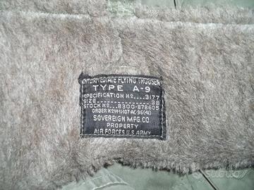 NON ACCETTO TRANSAZIONI TRAMITE SUBITO. Se interessati, contattatemi. Pantaloni imbottiti A-9 da pilota Us Army Air Corps Seconda Guerra Mondiale. Tg 38. Usati, con qualche rammendo qua e la, di caserma. Manca un bottone in prossimità di dove vanno attaccate le bretelle; il bottone della chiusura anteriore è stato sostituito. Presenti anche alcuni aloni. Le zip sono a posto e la pelliccia interna appare in eccellenti condizioni. Spedizione € 10.80 Poste Delivery Standard