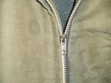 Usato, con evidenti segni di usura e del tempo, ai polsi, ai bordi delle tasche, sul colletto e in corrispondenza dell' orlo basso, come da