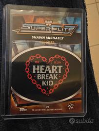 carta originale Topps WWE del 2021, inserto Super Elite Icon (IC5) dedicata alla leggenda Shawn Michaels 'The Heartbreak Kid'. La carta è una parallela numerata a mano 275/299. Condizioni eccellenti (Near Mint), sempre conservata in protective sleeve e top loader. Un pezzo immancabile per ogni collezionista di HBK.