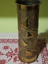 si tratta di un Bossolo di artiglieria in ottone decorato a mano.