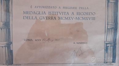 WWI QUADRO DIPLOMA Iª GUERRA MONDIALE CON MEDAGLIE