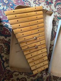 XILOFONO 15 NOTE 15 PIASTRE 2 BACCCHETTE MATERIALE LEGNO MADE IN USSR MISURA SCATOLA 42 cm X 25 cm ORIGINALE