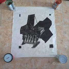 Xilografia Cembalo 1995 firmata arte moderna 54x65. Opera grafica su carta, titolo “Cembalo”, datata 1995. Tecnica xilografia/linoleografia, stile moderno con forti contrasti in bianco e nero e composizione geometrica. Firma presente ma di difficile lettura (non attribuita con certezza). 📏 Dimensioni: 54 x 65 cm Condizioni: carta sottile con lievi pieghe e segni d’uso, come da foto. Spedizione con imballaggio accurato o ritiro a mano a Varese/Milano.