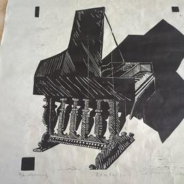 Xilografia Cembalo 1995 firmata arte moderna 54x65