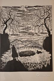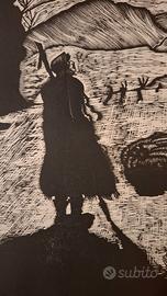 Xilografia originale di Bruno da Osimo "Canto notturno di un pastore errante" 1942.