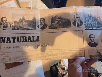Quadro sinottico xilografia 1870 Augusto Bosi Mai utilizzato aperto + contenitore La foto principale presa da internet per mostrare articolo MISURE: mm 1250x920 L italia nei suoi confini naturali gran quadro sinottico Ing. Augusto Bosi Editore tipografia editrice lombardo 1870 Edizione Salvi rara Info: Nella parte esterna compaiono, in xilografia, ritratti dei grandi personaggi italiani e immagini dei maggiori monumenti nazionali. Nella parte interna sono elencati: "Cenni storici; Litorali marittimi; Porti marittimi; Fiumi navigabili; Saline; Antiche denominazioni d'Italia; Uomini illustri; Capi o Promontori; Gallerie aperte nelle rupi; Canali navigabili; Monumenti antichi; Cenni fitologici; Cascate d'acqua; Ponti di recente costruzione; Ponti sospesi a filo di ferro; Epiteti dati ad alcune città; Cenni geologici; Catene delle montagne; Piazze fortificate; Strade principali; Edificii sacri più grandiosi; Piazze più ampie e regolari; Topografia; Laghi; Popolazione dei luoghi principali conforme le odierne statistiche; Archi di Trionfo; Clima e temperatura; Isole; Recinto delle più grandi Città; Monti più elevati; Stretti e canali marittimi; Biblioteche; Università; Catacombe memorabili; Industria, Vulcani eruttanti; Gallerie di Belle arti; Istituti di Beneficenza; Commercio; Golfi principali; Torri e cupole più elevate; Teatri più rinomati; Statue equestre più pregevoli; Ospedali celebri; Movimento commerciale in Italia; Colossi e statue più rinomate; Anfiteatri antichi e moderni; Rotonde antiche e moderne; Cimiteri monumentali"