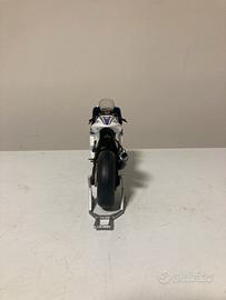 Vendo modellino Minichamps Yamaha M1 Valentino Rossi 2008 scala 1:12. Tenuta in collezione sotto teca. Modellino dettaglito in allumio con pance carene laterali removibili e cavalletto alzamoto. Purtroppo per svariati traslochi ho smarriro la scatola originale, ma per la spedione (oltre alla pulizia approfondita del modellino) il tutto verra inballato e spedito con cura.