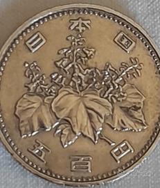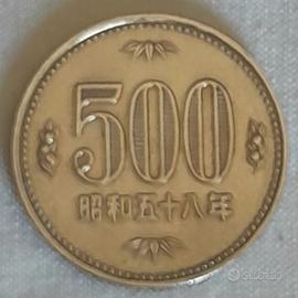 Moneta giapponese da 500 yen del 1983 (昭和五十八年 – 58° anno dell'era Shōwa). In ottimo stato di conservazione.