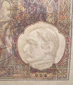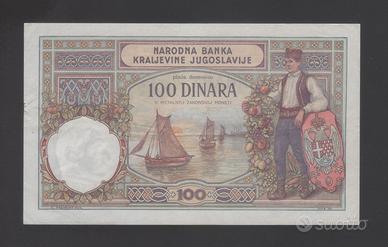Vendo banconota di 100 dinara Regno di Jugoslavia anno 1929 con filigrana testa del principe Miloš Obrenović di profilo.