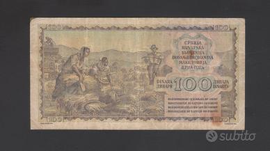 Vendo banconota della Jugoslavia FNRJ (Federativna Narodna Republika Jugoslavija). Valore: 100 dinara ( Lokomotiva ) Anno: 1953 Codice catalogo: P-68 Conservazione: BB / VF