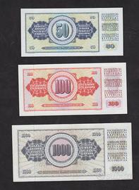 Vendo tre banconote della Jugoslavia federale socalista. Banconote sono in perfetta condizione. codice catalogo: P-80c 100 Dinara 1965 UNC P-86 1000 Dinara 1974 aUNC P-89a 50 Dinara 1978 UNC