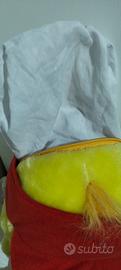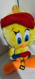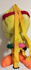 Zainetto di peluche originale dei Looney Tunes (Warner Bros anni '90 Vintage Summer Edition )raffigurante l'iconico canarino Titti. Questo modello è la ricercata "Summer/Beach Edition", dove Titti indossa un berretto rosso coordinato a un salvagente colorato (blu, verde e rosso) Modello: Zainetto a spalla con vano portaoggetti nella testa Versione grande:45 cm di altezza. Materiali: Peluche "super soft" giallo brillante, occhi in plastica termoformata tipica dell'epoca, becco e zampe in tessuto imbottito. CONDIZIONI (ECCELLENTI - VINTAGE): L'oggetto è stato conservato con estrema cura e presenta uno stato di conservazione superiore alla media: Esterno: Il pelo è pulito,morbido e il colore giallo è ancora vivace,senza aloni o zone sbiadite dal sole. Dettagli: Gli occhi in plastica sono lucidi e ben fissati. Cappellino e salvagente sono integri e saldamente cuciti. Meccanismi: La cerniera sulla testa è originale, fluida e perfettamente funzionante.Bretelle: Cinghie gialle in nylon regolabili, pulite e senza sfilacciature. Fibbie in plastica nera integre.Interno: Fodera interna bianca immacolata, priva di macchie, odori o strappi (caratteristica rara per questi oggetti). Un pezzo immancabile per i collezionisti di merchandising Warner Bros o per chi cerca un accessorio unico in pieno stile retro/vintage per completare un outfit originale..#titti #zainopeluche #looneytunesvintage #anni90 #collezionismo.