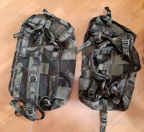 Zaino sperimentale Mod. 2002 per Alpini. Ottime condizioni, presenti le due tasche laterali staccabili e utilizzabili come zainetto tattico unendole. Una delle tasche sopra il cappuccio ha il cursore della cerniera da sostituire.