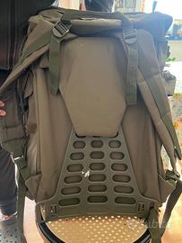 Zaino alpino come nuovo usato solo due volte. Misure approssimative 60X50X20 capacità 65 litri. Zainetto tattico da poter agganciare allo zaino misure approssimative 30x40x15. Unico difetto sulla cinghia in alto come da foto