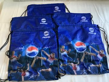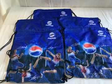 Rari, nuovi e mai utilizzati La grafica raffigura calciatori degli anni 2000 * Thierry Henry * Fernando Torres * Lionel Messi Materiale: tessuto sintetico resistente Utilizzabile come zaino con laccetti Dimensioni: 39 x 33 cm Disponibili: 30 pezzi (lotto unico o anche lotti da 5 su richiesta) Perfetti per: - collezionisti di articoli Pepsi/calcio vintage - uso quotidiano (scuola, palestra, tempo libero) - regalo per appassionati di calcio anni 2000 Disponibile spedizione o ritiro a mano.