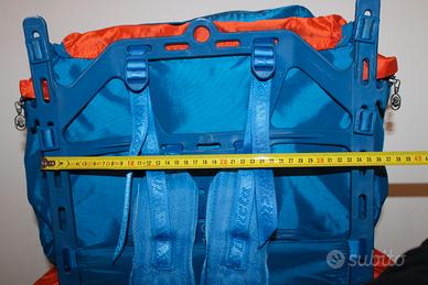 Lo zaino ha una capacità stimata di circa 65litri, ideale per trekking di più giorni, campeggio o per chi cerca un autentico accessorio outdoor vintage ancora perfettamente utilizzabile.