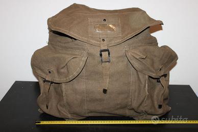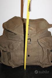 Proposto in vendita autentico zaino militare italiano d’epoca (anni 1970), realizzato secondo gli standard dell’equipaggiamento dell’Esercito. Un pezzo originale, non replica, ideale per collezionisti, appassionati di vintage militare o per uso pratico grazie alla sua straordinaria robustezza. Realizzato in resistente tela di cotone (canvas) pesante color verde oliva, questo zaino si distingue per la qualità costruttiva tipica delle forniture militari: materiali durevoli, cuciture solide e struttura pensata per sopportare carichi importanti. Le cinghie di chiusura con fibbie e i dettagli metallici sono originali e perfettamente funzionali. Dal punto di vista estetico presenta un autentico fascino vintage, con una patina uniforme che ne testimonia l’epoca senza comprometterne l’integrità. La linea è classica e funzionale: ampio vano centrale con chiusura a patta, due tasche laterali a soffietto e sistema di fissaggio robusto. Condizioni eccellenti per l’età: nessuno strappo nessun buco tela integra e consistente catena interna e occhielli metallici privi di ruggine Dimensioni (come da foto): larghezza: circa 55–60 cm altezza: circa 45–50 cm Un oggetto che unisce storia, funzionalità e stile senza tempo: perfetto sia come pezzo da collezione sia per un utilizzo quotidiano dal carattere unico. Disponibile per ulteriori foto o informazioni.