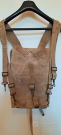 Zaino Militare USA WW2 haversack M28 LONG 8-13 originale, ritrovamento da soffitta, ottime condizioni, zona di rinvenimento Friuli Venezia Giulia, probabilmente arrivato qui in seguito agli sbarchi alleati in Italia e alla campagna militare che ha portato il fronte a muoversi dalla linea Gustav alla linea Gotica, fino alla ritirata degli eserciti dell'asse e all'occupazione alleata del nord Italia, Friuli compreso. Ci sono ancora i lacci per bloccare le cinghie che il soldato ha annodato con stoffa di fortuna. È completo di tasca anteriore, dietro alla quale di fissava il badile.