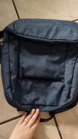 Zaino in tessuto riciclato flessibile, con ampia tasca e taschina frontale. Marca: Smemoranda. Colore: blu jeans. Nuovo.