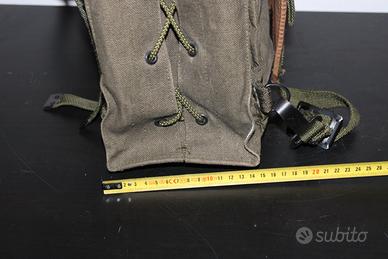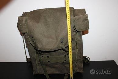 Zaino tattico originale dell’Esercito Italiano, modello regolamentare in uso fino agli anni ’90, realizzato in tela canvas pesante di alta qualità, nella classica colorazione verde oliva militare.