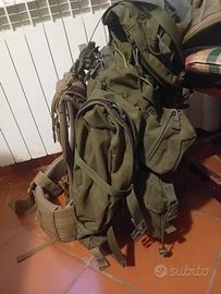 Lo zaino è in ottime condizioni, anche il NICE frame è in ottime condizioni ma mancava la metà della cinghia pettorale, che è stata rimpiazzata e lo spallaccio riparato (vedesi foto). Inclusi 2 coprizaini, 1 woodland e 1 vegetato desert