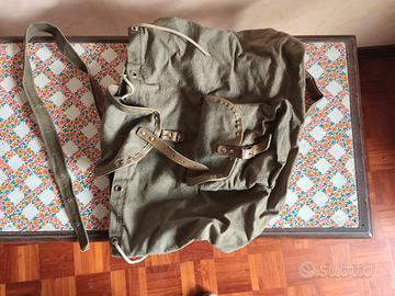 Zaino tipo militare/escursionismo autentico in tela verde e cuoio. Un vero pezzo vintage, indistruttibile e super capiente!