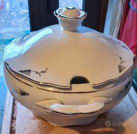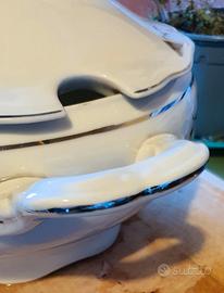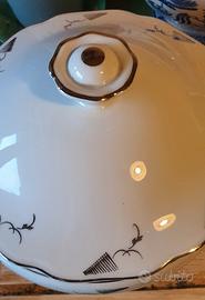 Coppia di Zuppiera / risottiera ceramica con finiture argento.