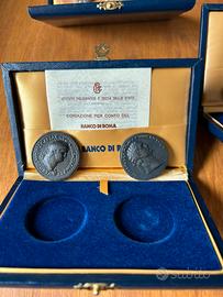 Vendo 5 coppie di riproduzioni ufficiali in bronzo di antichi sesterzi romani dell’Imperatore Nerone (I sec. d.C.), realizzate nel 1988 dall’Istituto Poligrafico e Zecca dello Stato per conto del Banco di Roma, con autorizzazione del Ministero dei Beni Culturali.