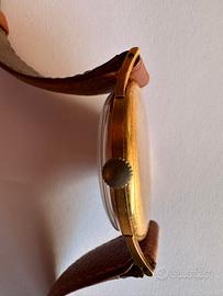 Zenith - oversize - uomo - anni 40/50 - solo tempo Zenith Vintage in oro massiccio 18kt - a carica manuale - PEZZO da COLLEZIONE --------------------------------- Perfettamente Funzionante Tutto originale Misura: Tondo con diametro 36 mm escluso corona. La macchina è marcata Zenith Il fondello della cassa e’ marchiata all’interno Sul fondello riporta il numero identificativo 609748 la corona non e’ marcata (gli orologio di quell'epoca la Zenith non la marcava infatti anche sul quadrante riporta solo il nome senza logo ) L’orologio e’ completo di cinturino marrone in pelle originale e marcato zenith con fibbia originale e marcato zenith Corredato inoltre di scatola originale Zenith in madreperla (condizioni come da foto) Si assicura sulla provenienza dell'orologio.